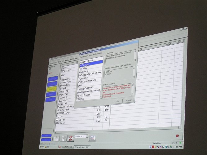 - Демонстрация на большом экране информации, показываемой сканером, подключенным в настоящий момент времени к реальному автомобилю, с одновременным озвучиванием комментариев и примечаний ведущего,