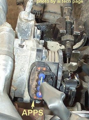 - датчик положения педали газа находится на корпусе дроссельной заслонки и соединен с педалью газа с помощью тросика. Кроме этого, как только водитель нажимает или отпускает педаль газа, напряжение на APPS изменяется и ЕСМ использует этот "двойной" сигнал для