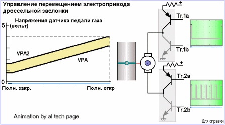 тока через двигатель. Кроме того, это позволяет за счет изменения скважности управляющих импульсов изменять скорость перемещения дроссельной заслонки и "противостоять" усилию возвратной пружины и потока воздуха. Для замедления перемещения