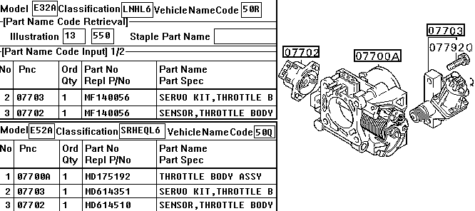и Е52А: *Для справки. Точное определение Part No. возможно только по VIN-code Вашего автомобиля.