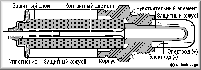 - " Open Loop "). Zirconia Oxygen Sensor represents the ceramic case in which platinum electrodes are established. One of them is in a stream of exhaust gases, and the second in an atmosphere. At high temperature ceramics ZrO2 Alloyed is firm electrolyte, i.e. will carry out (spend) ions of oxygen. Between platinum electrodes the potential difference which characterizes a degree of enrichment of a fuel-air mix (Rice 2) is created. Application Pb gasoline in systems with is inadmissible, since causes "poisoning" of platinum.