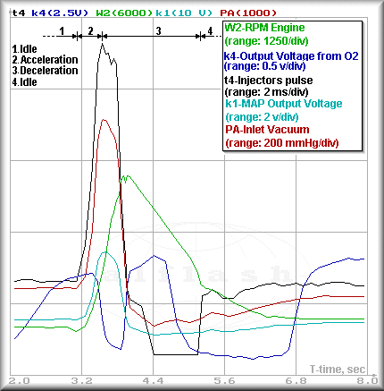 Sensor (k4), revolutions (rpm) of the engine (W2), time (injectors pulse) of opening of