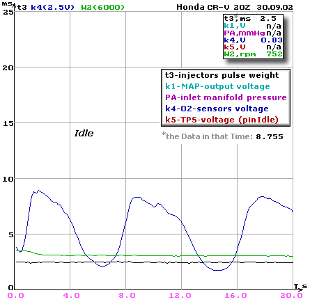 O2 Sensor Voltage of 1999 Honda CR-V (LHD)