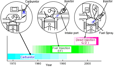 For years, engineers have known that if they could build a petrol engine that worked like a diesel engine-in other words, one in which fuel is injected directly into the cylinder and the stratified, rich mixture right near the spark plug is ignited-they would have an engine that achieved both the fuel efficiency of a diesel engine and attained the high output of a conventional petrol engine. However, development of such an engine has been impeded by petrol's poor combustibility. Diesel engines operate on a thermodynamic cycle, meaning that as long as a sufficient temperature is reached, thorough ignition will occur regardless of the air/fuel mixture condition. In order to achieve combustion with petrol, gaseous fuel and air must be mixed to form just the right air/fuel mixture, and precise control of position and timing of the air/fuel mixture is necessary to ensure delivery of this mixture to the very limited space between the spark plug electrodes in the very specific timing of ignition. The Gasoline Direct Injection engine is able to achieve this through technology that enables precise control over the air/fuel mixture.