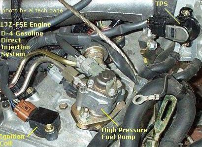 Let's consider some features of this injections systems on an example of the engine 3S-FSE, DOHC, 16V, VVT-i, (E-SCV) Toyota (D4=Direct Injection 4 Stroke Gasoline Engine).