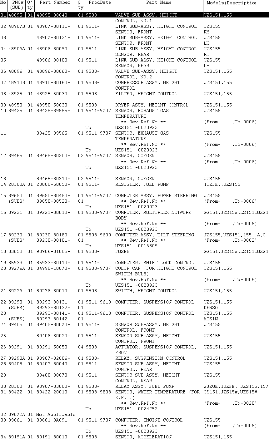 This bulletin contains the correct procedures for reading and clearing the Diagnostic Trouble Codes from the Electronic Air Suspension on the 1995 LS 400. In general, the correct procedure differs from the Repair Manual (RM405U1) in the following areas: