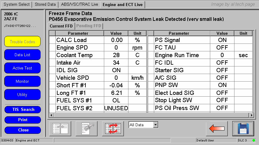 For example, this Scion tC (a '06) Data by TechStream Lite Kit