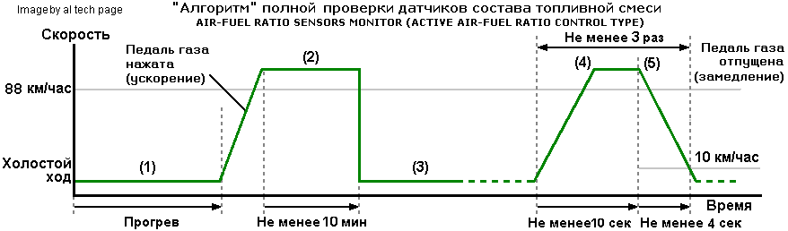 снова Test Drive. Посещение No.3. Код неисправности: P1130. Похоже, что Test Drive был слишком коротким и система не "засекла" эту неисправность, а я ее "прощелкал". Начинаю жалеть, что в надежде на быстрый "успех" не использовал (во время предыдущего" посещения режим "Check Mode" ;-( По-прежнему напрягает MAF (около 4.0 g/s) и постоянное напряжение на A/F Ratio Sensor B1S1 (3.700 V). Установка заведомо исправного MAF датчика не изменила ни состояние авто, ни параметры его инжекторной системы. Выкручен несправный A/F Ratio Sensor (photo) и установлен заведомо исправный (от авто с пробегом 18 mi). Поэтому стало изменяться напряжение на нём. Параметры MAF естественно не изменился, НО LFT#1 поменяло знак!!! Т.е. теперь вместо избыточного обеднения смеси, блок управления видит ее избыточное обогащение! И при этом MAF aproxm. 4.0 g/s !!! Поскольку исправный A/F Ratio Sensor был установлен временно, то "продолжение следует" после покупки и установки исправного датчика... 10/08/2005 ** Cylinder 3 misfire detected during any particular 200 or 1000 revolutions which can cause catalyst overheating or deterioration in emissions (2 trip logic). ***A/F Sensor Circuit Range/Performance Malfunction (Bank 1 Sensor 1) ****For it code is reference on this (lexus/60061.html russian) or/and this (obdii.com/ubb/Forum1/HTML/002422.html english forum) * "Дергания" при переключении устранены благодаря использованию Lexus Service Bulletins. | |||||||||||||||||||||||||||||