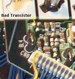 Bad npn dtrAfter check it is found out faulty Rohm (?) the transistor (TR2, SMD24 - SOBad resistorT23, npn dtr 50V 100mA 10k + 10k, DTC114ECA-?) and breakage (crack) of resistor R40 (10 Ohm).
