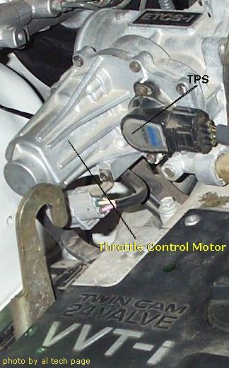 Electric Throttle Control System (ETCS) is composed of the throttle motor to operate the throttle valve, the electromagnetic clutch to connect the throttle motor with the throttle valve, the throttle position sensor to detect the opening angle of the throttle valve, the accelerator pedal position sensor to detect the accelerator pedal position, the ECM to control the ETCS and the one valve type throttle body. If the ETCS has a malfunction, the ECM shuts down the power for the throttle motor and the magnetic clutch, and the throttle valve is fully closed by the return spring. A servomotor moves the throttle to the desired position, and redundant throttle  position sensors report the results. If one of the pedal position sensors fails, the car can still be driven, and the check engine warning light is illuminated. If both sensors fail, engine control is lost, and the engine will only idle.