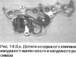 Косвенными признаками двигателей 7A-FE и 4A-FE, работающих на обедненной смеси являются наличие управления воздушным клапаном впускного коллектора вакуумным выключателем, расположенным в задней части двигателя или под впускным коллектором (см. рис.13.106. и 14.8.в), отсутствие датчика детонации.