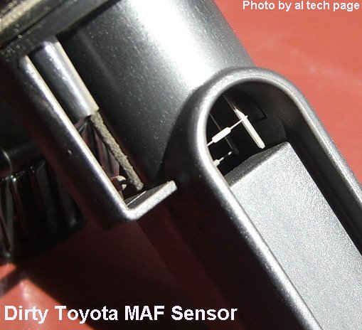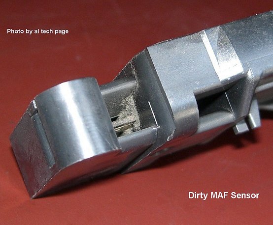When the MAF gets coated with that big Crud the Check Engine light will ON witch P0171, P0172, etc. (depending on that that more dirty (the Thermistor or the Platinum Hot Wire).