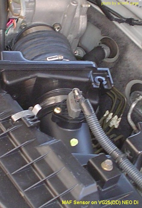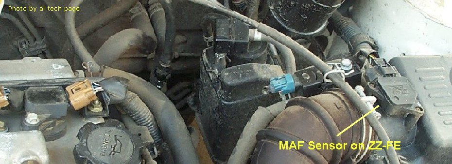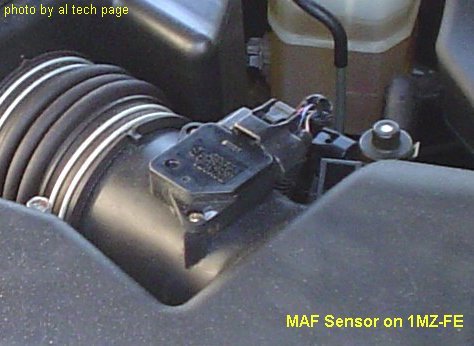 The MAF sensor is located directly in the intake air stream, between the air cleaner and throttle body.