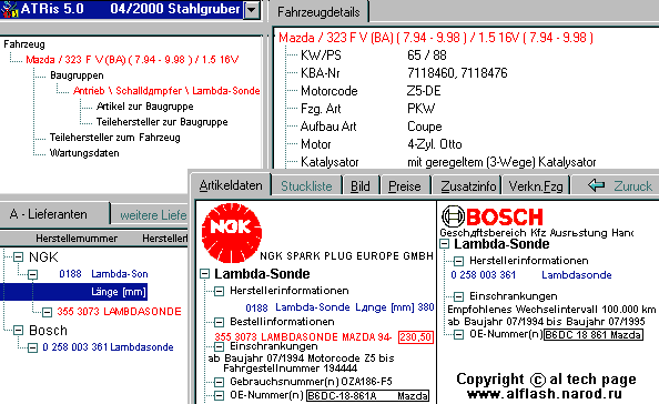 | Датчики содержания кислорода в выхлопных газах ("точка зрения" ATRis v.5.0 IV кв. 2000 г.) | ||||