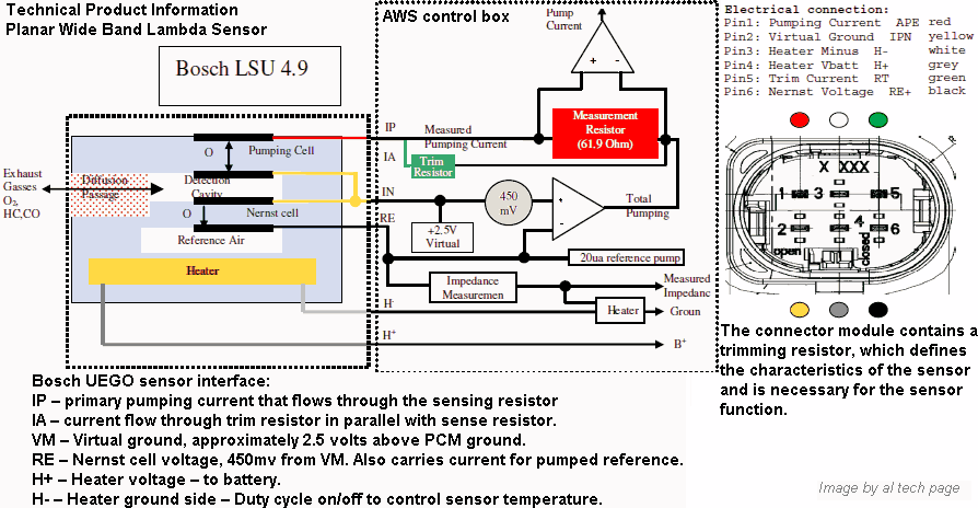 Like previous O2 and AF Sensors, the planar AFS has ambient air on one side of the ZrO2 and exhaust gases on the other side.