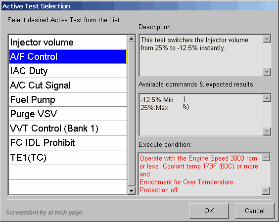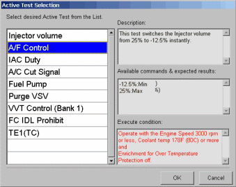 Active Test "A/F Control" by Toyota Techstream Lite