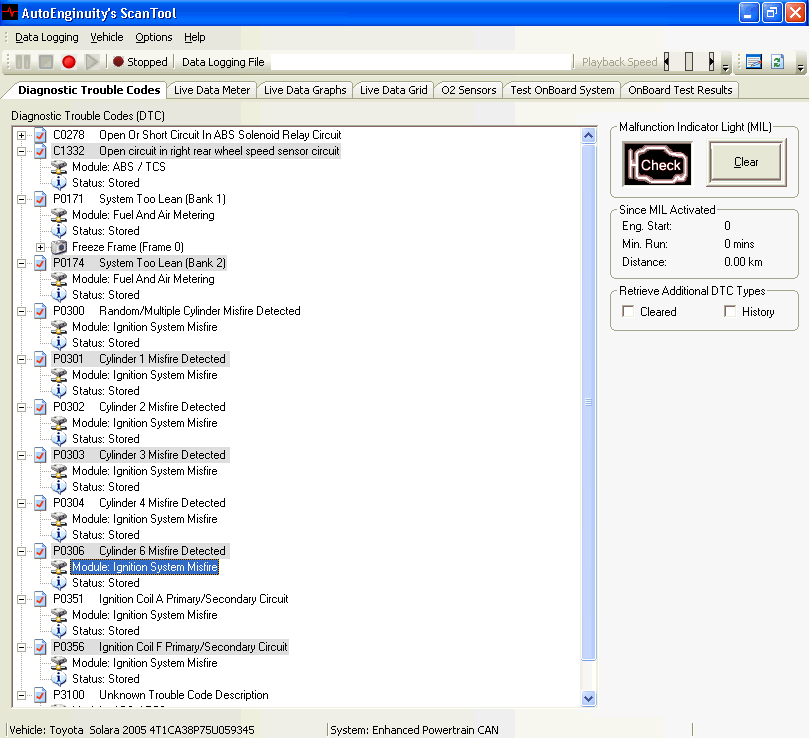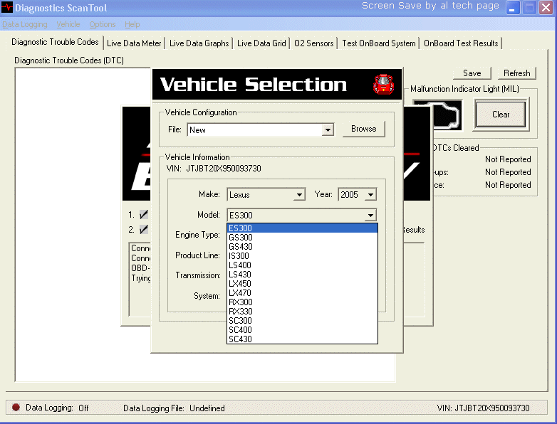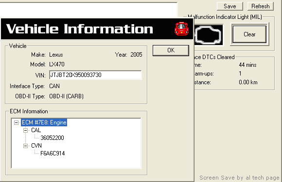 Diagnostic vehicles Scanner AE. I've just purchased the Scan Tool (Version 4.3.1.) about a several months ago. Avalon a '00 (1MZ-FE)