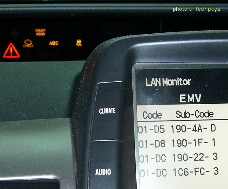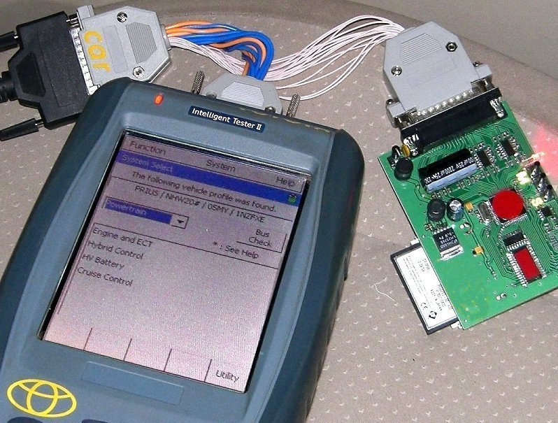 I know (by RM1130U) that ECM of this Primus uses the ISO 15765-4 for communication protocol and the terminal arrangement of the DLC3 complies with SAE J1962 and maches the ISO 15765-4 format. IMO: KWP2000 with CAN. "The HV control ECU' and "The battery ECU" uses the ISO 9141-2 communication protocol. The terminal arrangement of the DLC3 complies with SAE J1962 and matches the ISO 9141-2 format. I use different methods (Tools*) of diagnostics above Vehicle. For example, - the DTCs for CAN communication concerning the brake control system can be read by connecting the SST 09843-18040 to the Tc and CG terminals of the DLC3 connector, and observing the blinking of the ECB, ABS and VSC warning light (2-digit code) (For details, see the Pub. No. RM1075U, etc.) - "good" - "old and primitive" (photo:-) ScanGauge Tool by Linear Logic - "good" - AE PC-based Scan Tools with Enhanced interface for Toyota/Scion/Lexus (EI03) 1995-2005 - Toyota/Lexus OEM Scan Tool (Intelligent Tester II) - "very good" I try different ways for Diagnostic, but not have full possibility for diagnosis by AE PC-based Scan Tool :-( Take a look details in http://members.iatn.net/forums/read/msg.aspx?f=forum8&m=57593&fv=0&ar=0