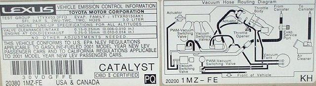 Note. Проверяйте наличие и содержание Emission Control Label Вашего авто. Существуют значимые отличия в между авто разных рынков и года выпуска. Например, RX330 (2003 г.в. из ОАЭ) совершенно нормально воспринимает LFT (долговременную топливную коррекцию) более 30 % и при этом не зажигает лампу "Check Engine" (например, с кодом неисправности P0171). Для авто for USA - это нонсенс. Кстати, это одно из возможных объяснений разной "частоты" включения лампы "Check Engine" при эксплуатации авто в примерно одинаковых условиях post-USSR. Другими словами, в ПО автомобиля заложены разные критерии того, что считать неисправностью. Такие различия объясняются тем, что автомобиль должен соответствовать конкретным требованиям конкретной страны к автомобилям конкретного года. Более того, встречаются RX с пустым "окном" для диагностического разъема и лэйбой "no OBDII" ! Пока просто фото 1MZ-FE on RX300 with 3-stage ACIS System: