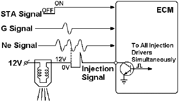 **Во многих системах при вращении стартера все форсунки включаются simultaneously (одновременно) вне зависимости от обычного способа управления (Grouped or Sequential).